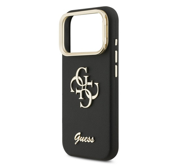 GUESS GRAINED BIG 4G & STAND CAMERA szilikon telefonvédő (műanyag hátlap, ECO bőr hatású hátlap, kitámasztó) FEKETE