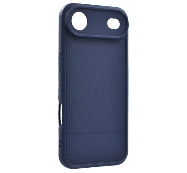 A rugalmas TPU-ból készült borító hatékonyan védi az eszköz testét a karcolásoktól és kisebb ütésektől. A felület egy markáns szénmintázattal modern, technikai megjelenést kölcsönöz. A kamera modul körüli kiemelkedő él további védelmet nyújt az objektíveknek.
