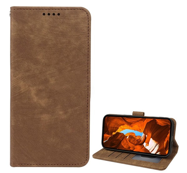 Tok álló, bőr hatású (FLIP, oldalra nyíló, asztali tartó, csíkos minta) BARNA