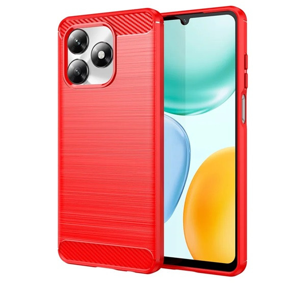 Szilikon telefonvédő (ütésállóság, légpárnás sarok, szálcsiszolt, karbon minta) PIROS