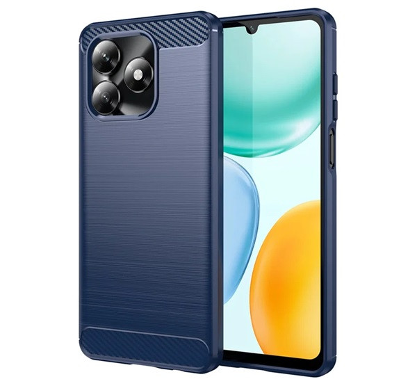 Szilikon telefonvédő (ütésállóság, légpárnás sarok, szálcsiszolt, karbon minta) SÖTÉTKÉK