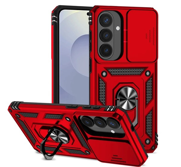 Defender szilikon telefonvédő (ütésállóság, tartógyűrű, kameravédő) PIROS