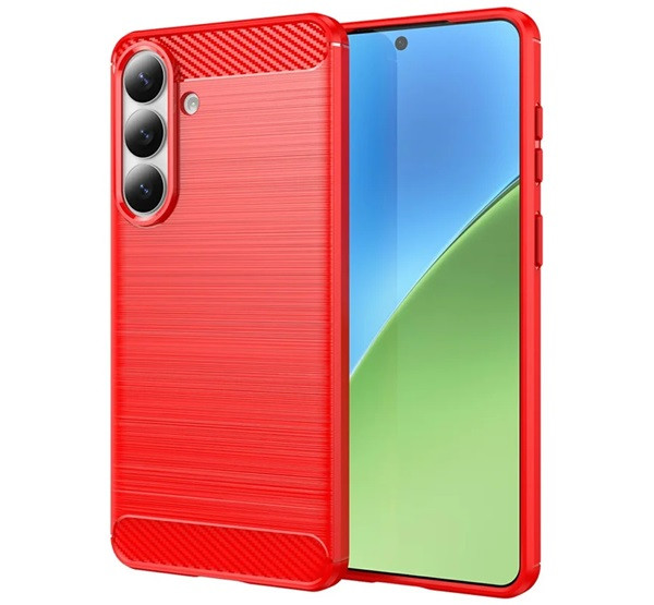 Szilikon telefonvédő (ütésállóság, légpárnás sarok, szálcsiszolt, karbon minta) PIROS