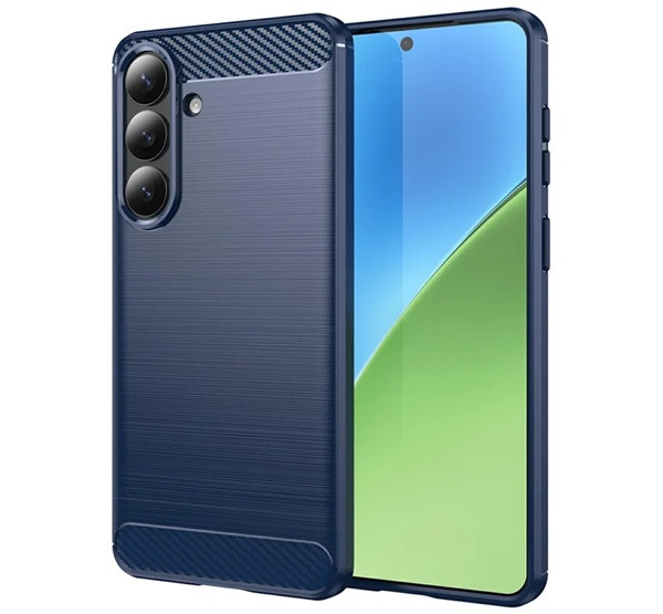 Szilikon telefonvédő (ütésállóság, légpárnás sarok, szálcsiszolt, karbon minta) SÖTÉTKÉK