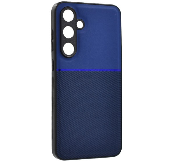 Szilikon telefonvédő (ütésállóság, mágneses, bőr hatású hátlap, csíkos) SÖTÉTKÉK
