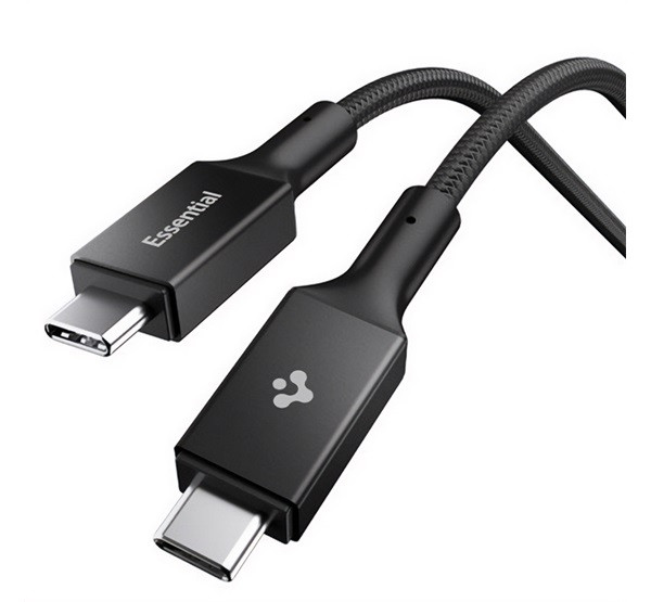 SPIGEN ESSENTIAL EB24015CC adatkábel (Type-C - Type-C, 240W, PD gyorstöltő, cipőfűző, 150cm) FEKETE
