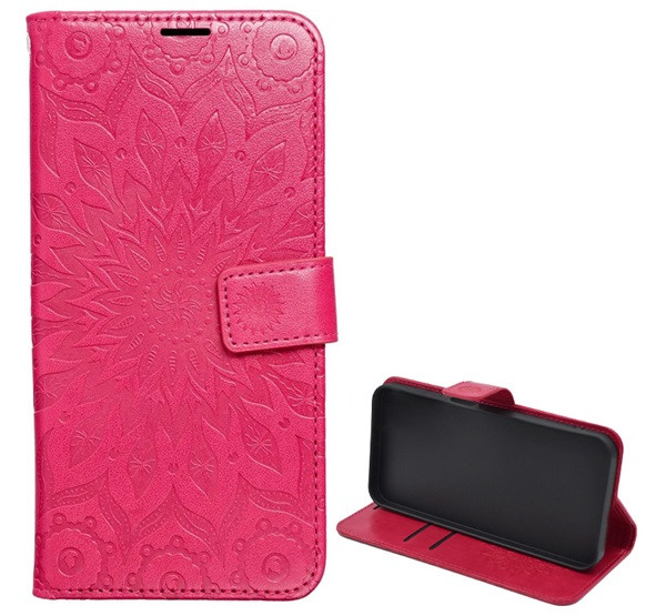 Tok álló, bőr hatású (FLIP, oldalra nyíló, asztali tartó, kézpánt, mandala) MAGENTA