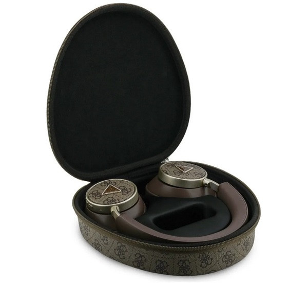 GUESS PU 4G TRIANGLE LOGO ENC bluetooth fejhallgató SZTEREO (v5.4, mikrofon, zajszűrő) SÖTÉTBARNA