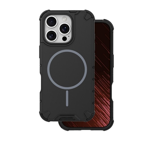 Defender műanyag telefonvédő (ütésállóság, légpárnás sarok, matt, szilikon belső, MagSafe) FEKETE