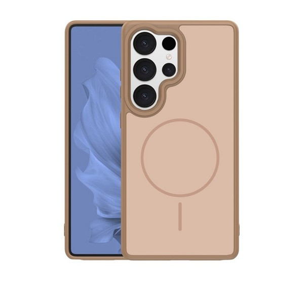 Szilikon telefonvédő (műanyag hátlap, ütésállóság, légpárnás sarok, kameravédő, MagSafe) BARNA