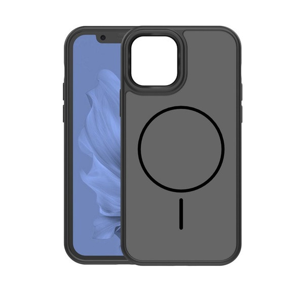 Szilikon telefonvédő (műanyag hátlap, ütésállóság, légpárnás sarok, kameravédő, MagSafe) FEKETE