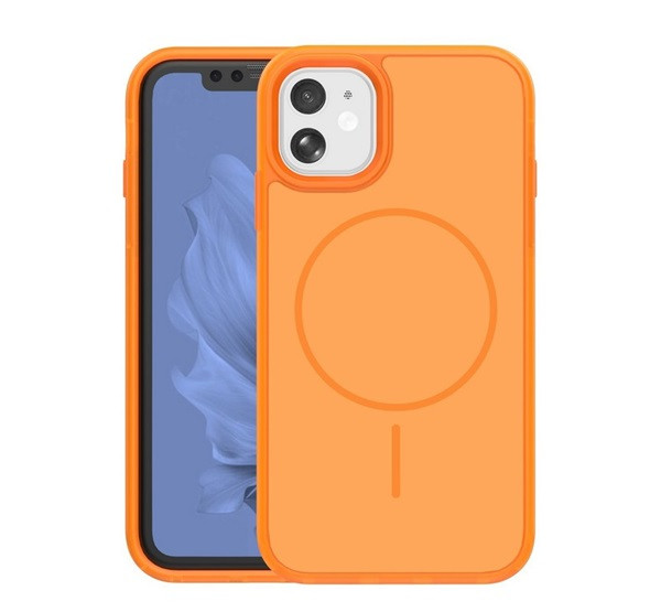 Szilikon telefonvédő (műanyag hátlap, ütésállóság, légpárnás sarok, kameravédő, MagSafe) NARANCSSÁRGA