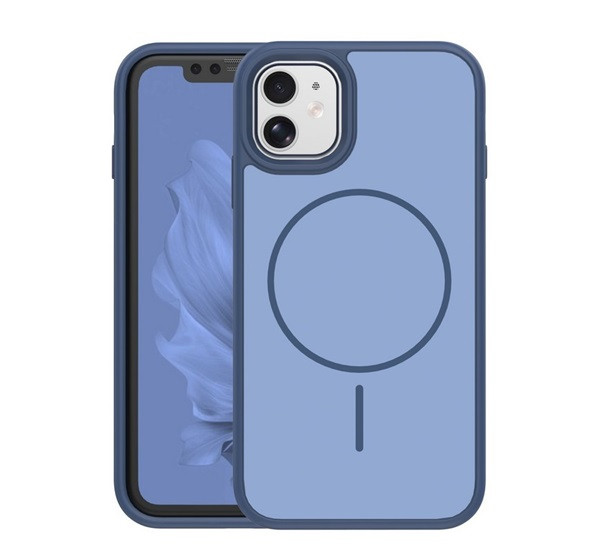 Szilikon telefonvédő (műanyag hátlap, ütésállóság, légpárnás sarok, kameravédő, MagSafe) SÖTÉTKÉK