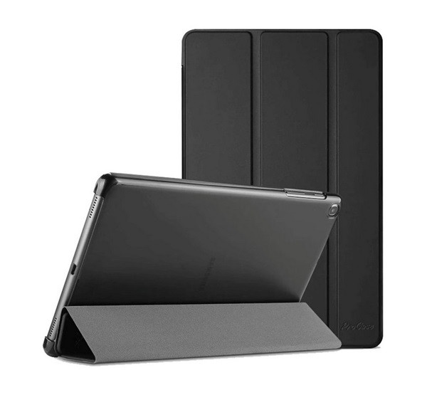 Designed for SAMSUNG tok álló, bőr hatású (FLIP, oldalra nyíló, TRIFOLD, asztali tartó) FEKETE