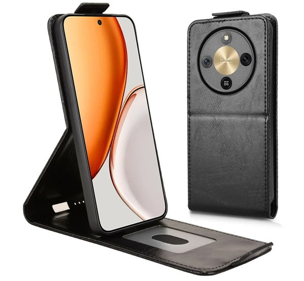 Tok álló, bőr hatású (FLIP, lefelé nyíló, asztali tartó, bankkártya tartó, mágnescsat) FEKETE
