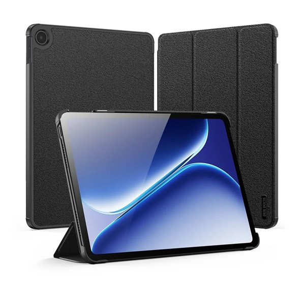 DUX DUCIS DOMO tok álló, bőr hatású (aktív FLIP, oldalra nyíló, TRIFOLD, asztali tartó, textil minta) FEKETE