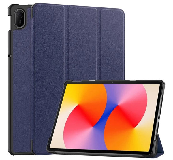 Tok álló, bőr hatású (aktív FLIP, oldalra nyíló, TRIFOLD, asztali tartó) SÖTÉTKÉK