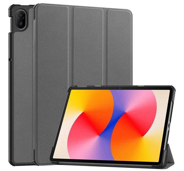 Tok álló, bőr hatású (aktív FLIP, oldalra nyíló, TRIFOLD, asztali tartó) SÖTÉTSZÜRKE