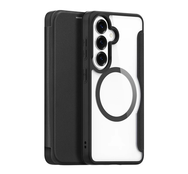 DUX DUCIS SKIN X PRO tok álló, bőr hatású (FLIP, oldalra nyíló, RFID, MagSafe) FEKETE
