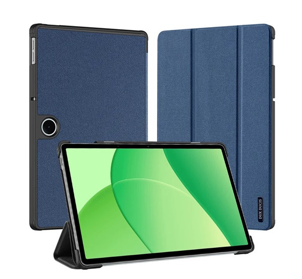 DUX DUCIS DOMO tok álló, bőr hatású (aktív FLIP, oldalra nyíló, TRIFOLD, asztali tartó, textil minta) SÖTÉTKÉK
