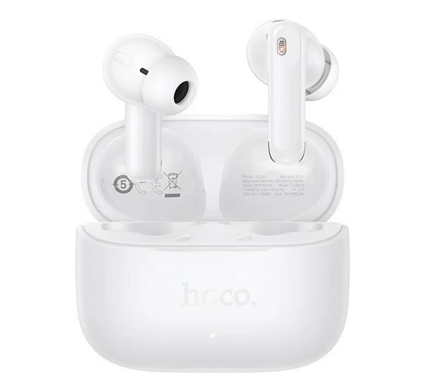 HOCO EQ30 bluetooth fülhallgató SZTEREO (v6.0, TWS, mikrofon, + töltőtok, karabíner) FEHÉR