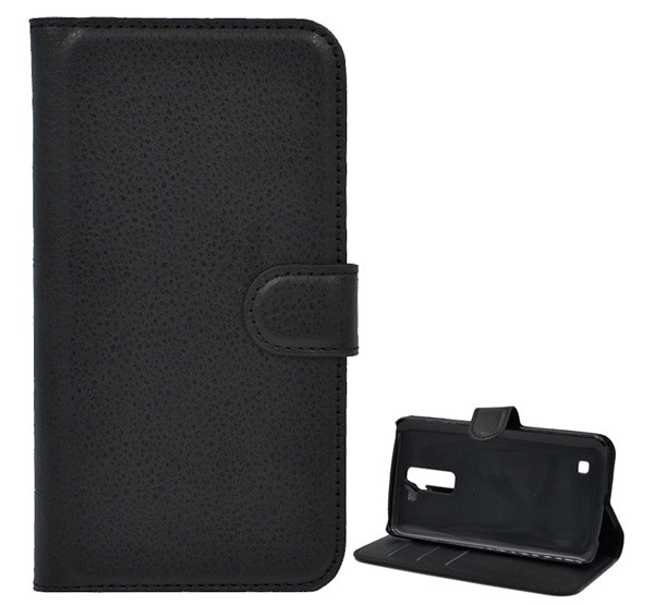 Tok álló, bőr hatású (FLIP, oldalra nyíló, asztali tartó, prémium) FEKETE