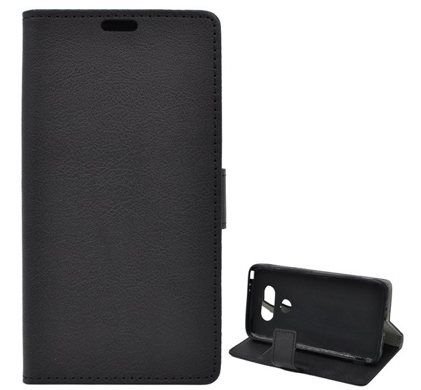 Tok álló, bőr hatású (FLIP, oldalra nyíló, asztali tartó, prémium) FEKETE