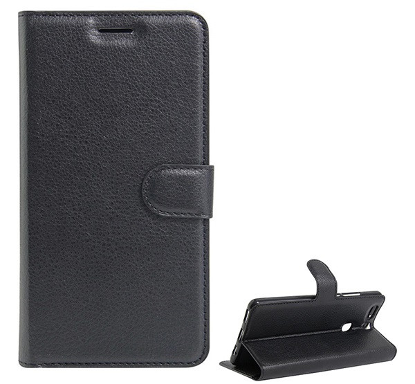 Tok álló, bőr hatású (FLIP, oldalra nyíló, asztali tartó, prémium) FEKETE