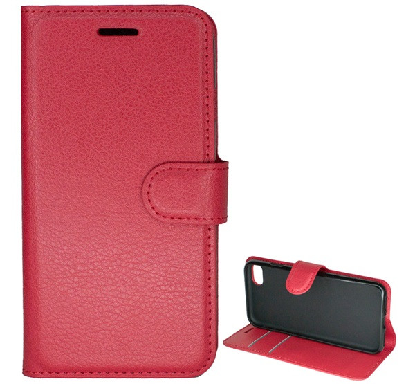 Tok álló, bőr hatású (FLIP, oldalra nyíló, asztali tartó, prémium) PIROS