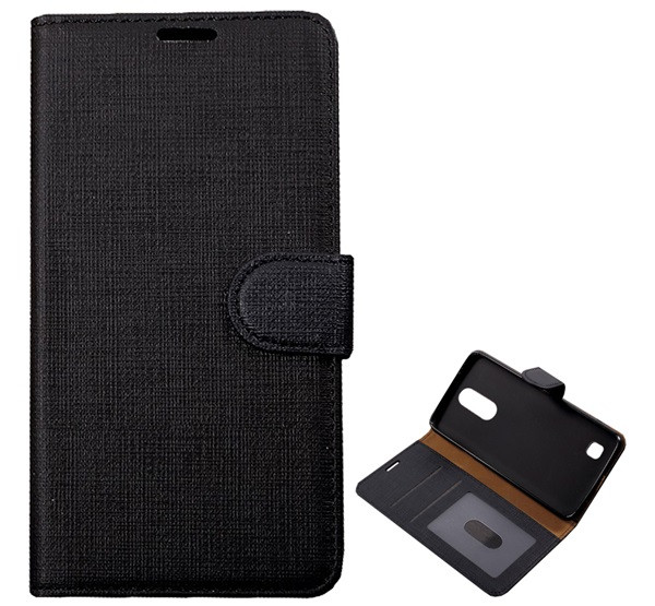 Tok álló, bőr hatású (FLIP, oldalra nyíló, asztali tartó, textil hatás) FEKETE