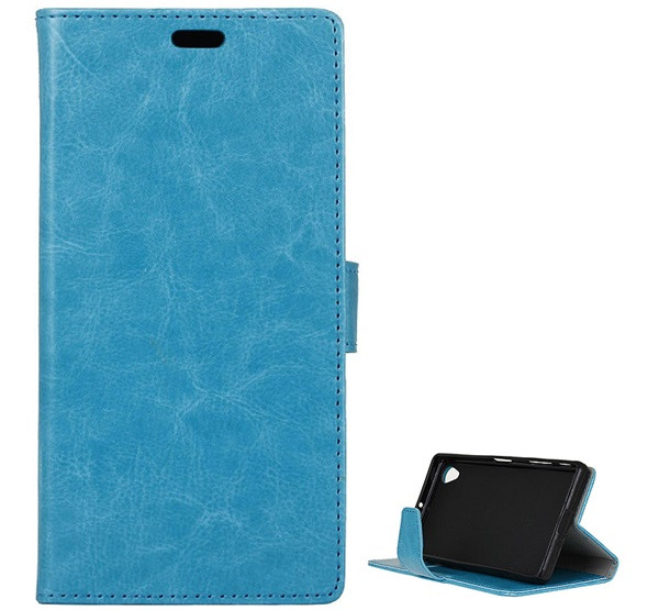 Tok álló, bőr hatású (FLIP, oldalra nyíló, asztali tartó, prémium) VILÁGOSKÉK