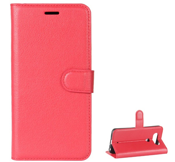 Tok álló, bőr hatású (FLIP, oldalra nyíló, asztali tartó, prémium) PIROS