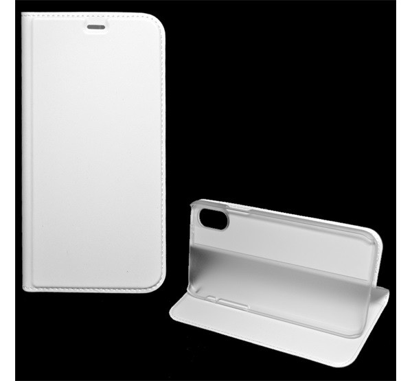 Tok álló, bőr hatású (FLIP, oldalra nyíló, asztali tartó) FEHÉR