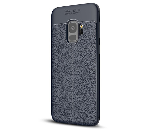 Szilikon telefonvédő (ütésállóság, bőr hatású, varrás minta) SÖTÉTKÉK