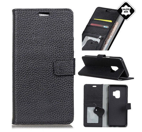 Tok álló, valódi bőr (FLIP, oldalra nyíló, asztali tartó) FEKETE
