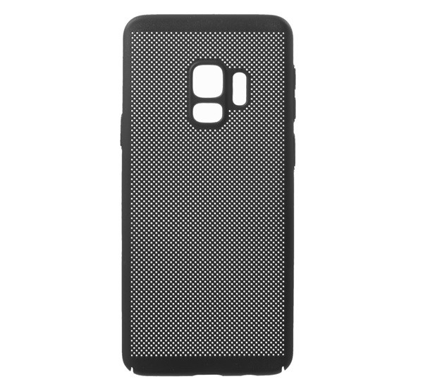 Műanyag telefonvédő (gumírozott, lyukacsos) FEKETE