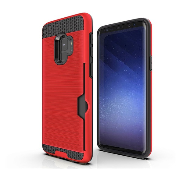 Szilikon telefonvédő (ütésállóság, kártyazseb, szálcsiszolt minta) PIROS