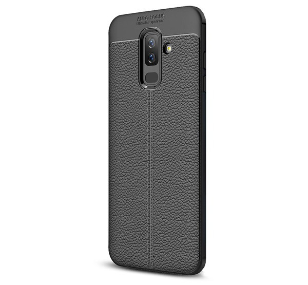 Szilikon telefonvédő (ütésállóság, bőr hatású, varrás minta) FEKETE