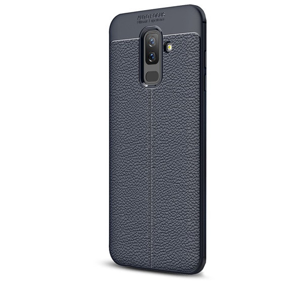 Szilikon telefonvédő (ütésállóság, bőr hatású, varrás minta) SÖTÉTKÉK