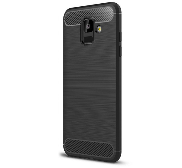 Szilikon telefonvédő (ütésállóság, légpárnás sarok, szálcsiszolt, karbon minta) FEKETE