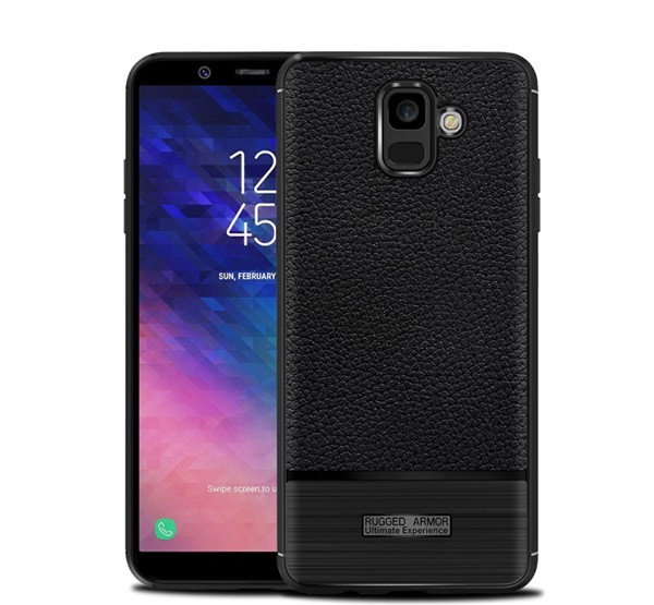 Szilikon telefonvédő (ütésállóság, bőr hatású, szálcsiszolt) FEKETE