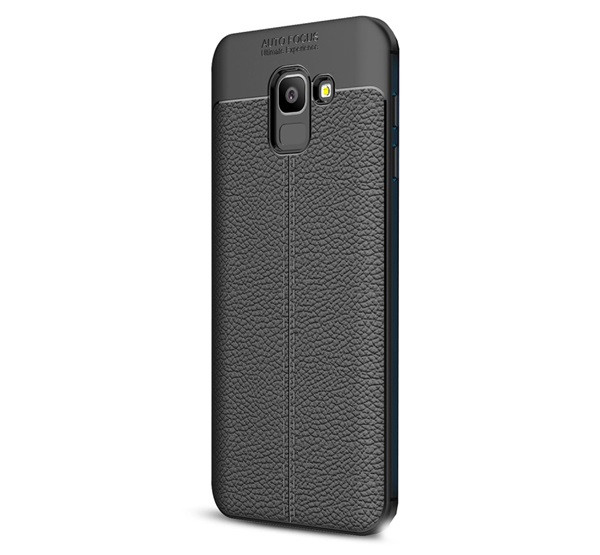 Szilikon telefonvédő (ütésállóság, bőr hatású, varrás minta) FEKETE