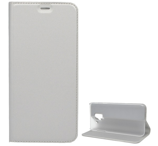Tok álló, bőr hatású (FLIP, oldalra nyíló, asztali tartó) EZÜST