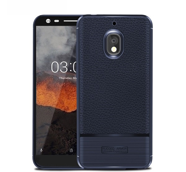 Szilikon telefonvédő (ütésállóság, bőr hatású, szálcsiszolt) SÖTÉTKÉK