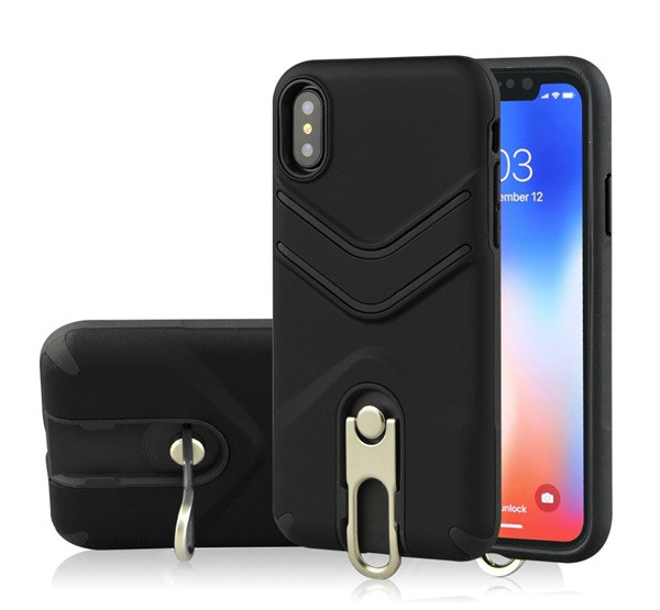 Defender műanyag telefonvédő (ütésállóság, gumírozott, fém kitámasztó) FEKETE