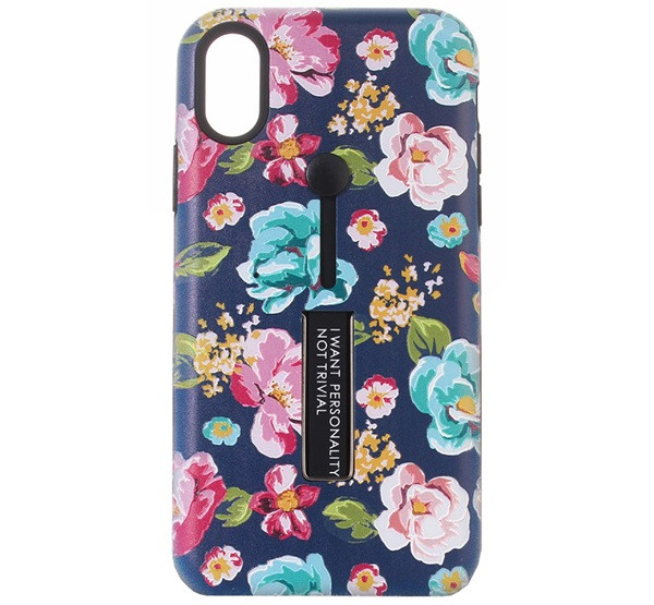 Szilikon telefonvédő (asztali tartó, ujjra húzható szilikon, virág) SÖTÉTKÉK