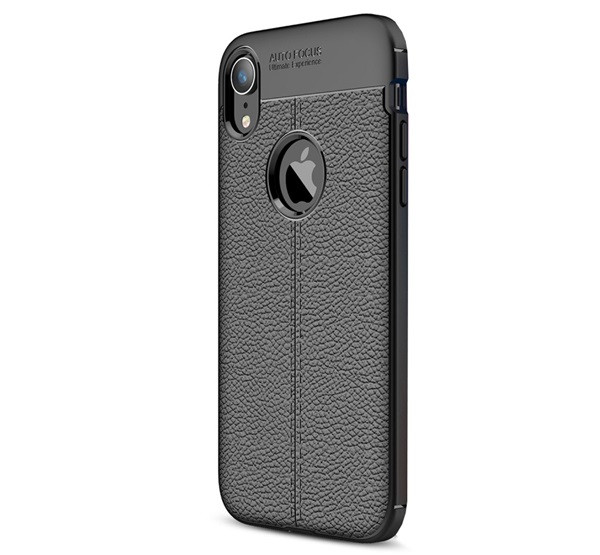 Szilikon telefonvédő (ütésállóság, bőr hatású, varrás minta, logó kivágás) FEKETE