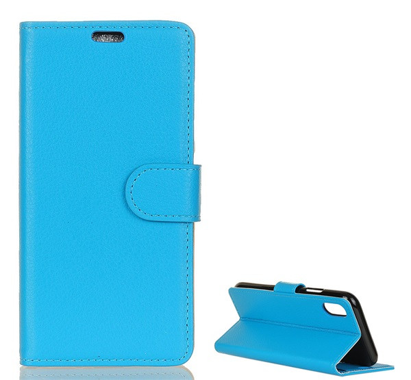 Tok álló, bőr hatású (FLIP, oldalra nyíló, asztali tartó, prémium) VILÁGOSKÉK