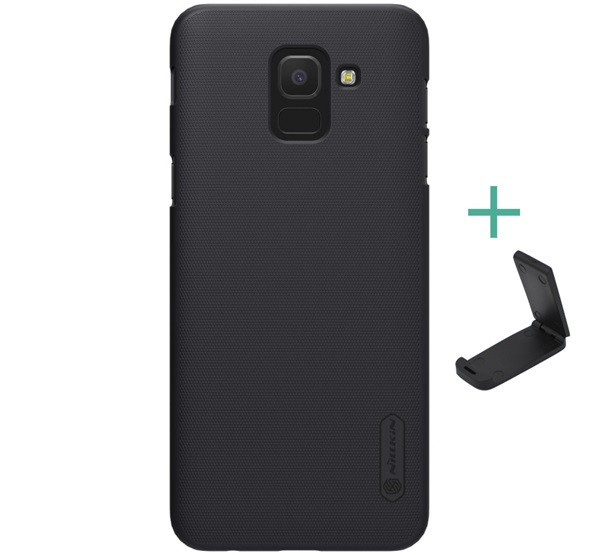 NILLKIN SUPER FROSTED műanyag telefonvédő (gumírozott, érdes felület + asztali tartó) FEKETE