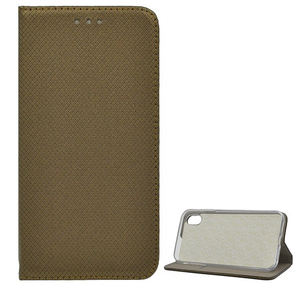 Tok álló, bőr hatású (FLIP, oldalra nyíló, asztali tartó, rombusz) ARANYBARNA